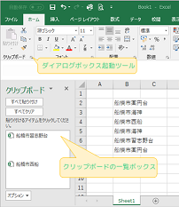 1.クリックボードのダイアログ起動ボックスを起動します。