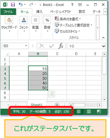 入力されたデータを選択すると、下に平均やデータの個数などが表示されます。