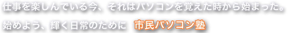 市民パソコン塾は学生から主婦・社会人、ご年配の方まで幅広く受講できます。豊富な講座があるので、じっくり長く受講することもできます。お仕事に役立つパソコンのスキルアップを一緒に目指しましょう!